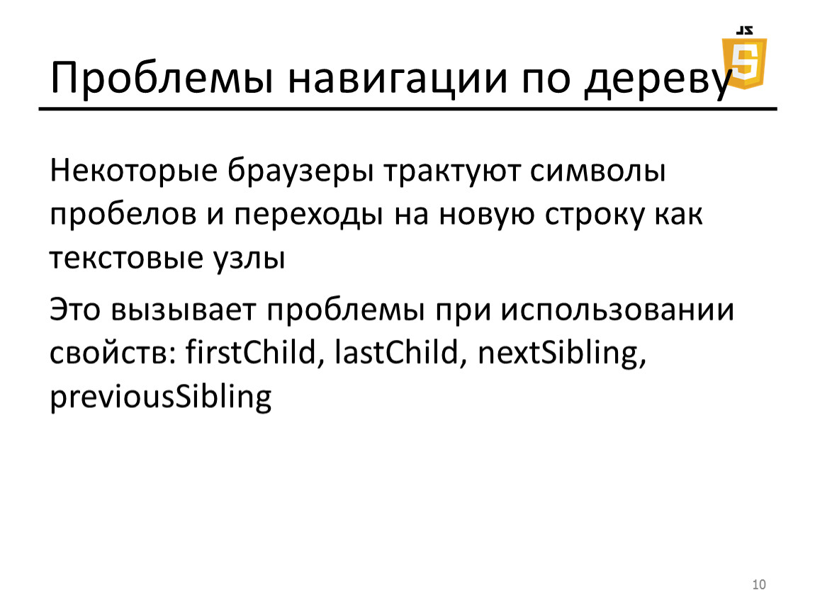Это вызывает проблемы при использовании свойств: firstChild, lastChild, nextSibling, previousSibling