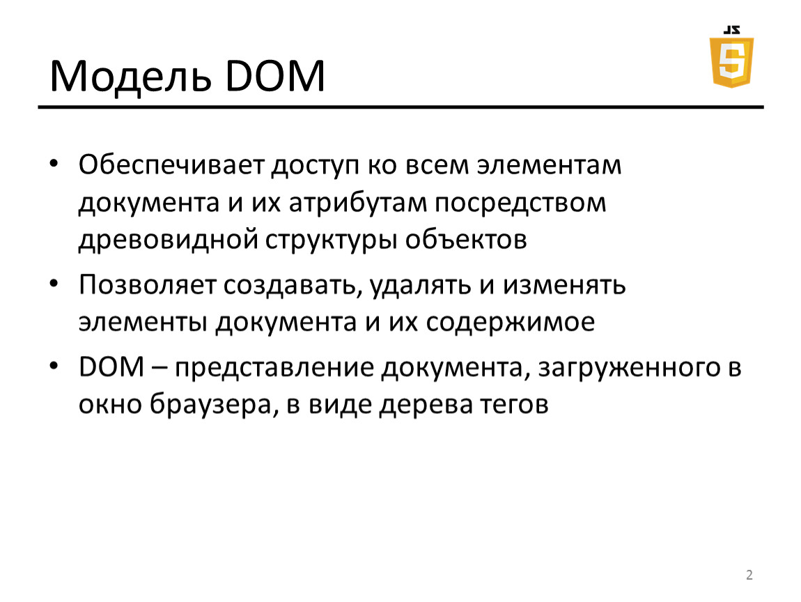DOM – представление документа, загруженного в окно браузера, в виде дерева тегов