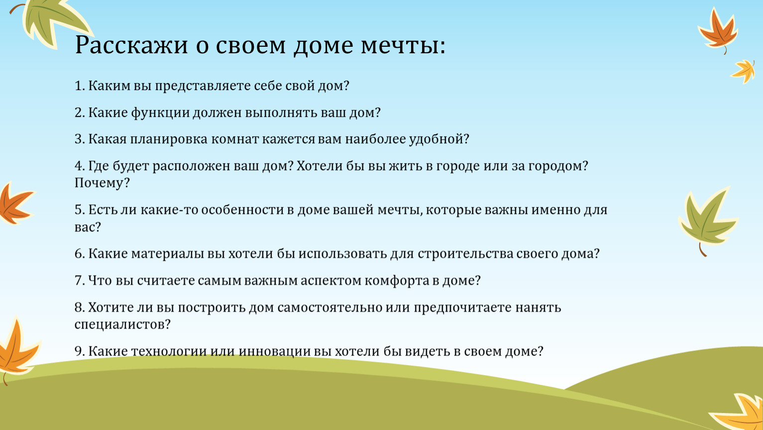 5. Есть ли какие-то особенности в доме вашей мечты, которые важны именно для вас?