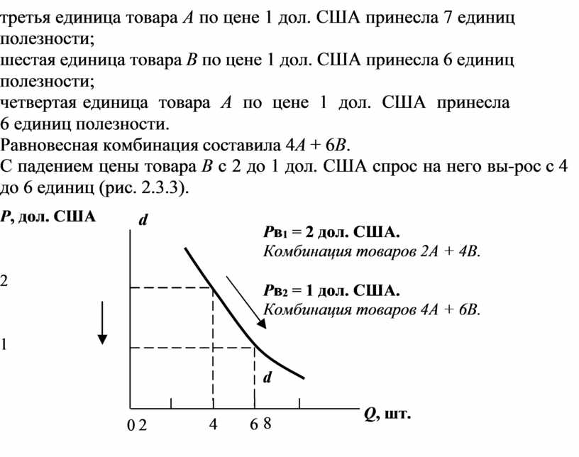 С падением цены товара В с 2 до 1 дол. США спрос на него вы- рос с 4 до 6 единиц (рис. 2.3.3).
