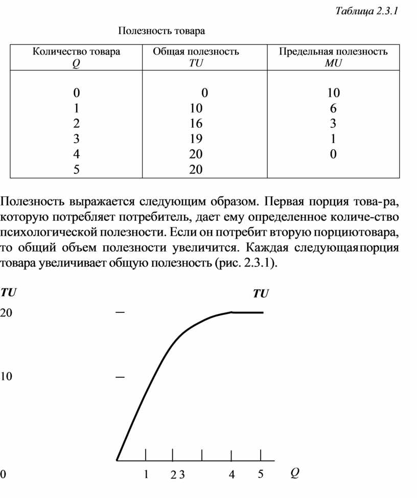 Полезность есть научная абстракция, которая означает субъективное удовольствие, пользу от потребления товара. Это психологическая оценка товара (табл. 2.3.1).