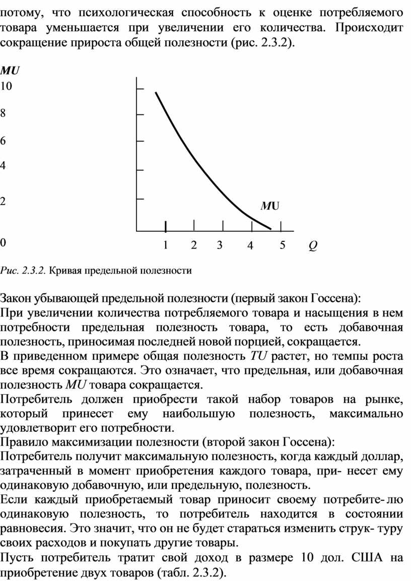 Рис. 2.3.2. Кривая предельной полезности