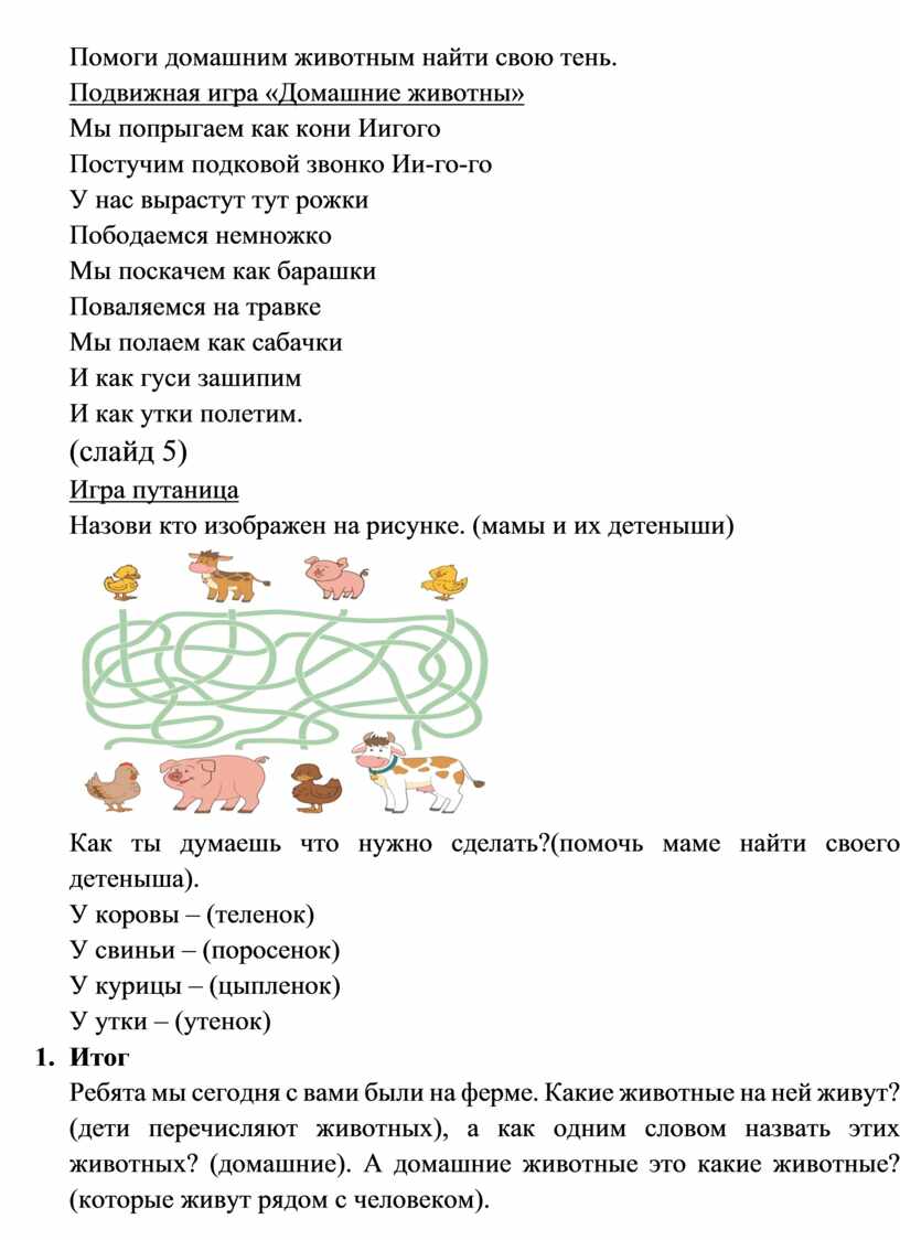 Подвижная игра «Домашние животны»