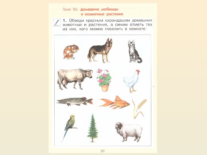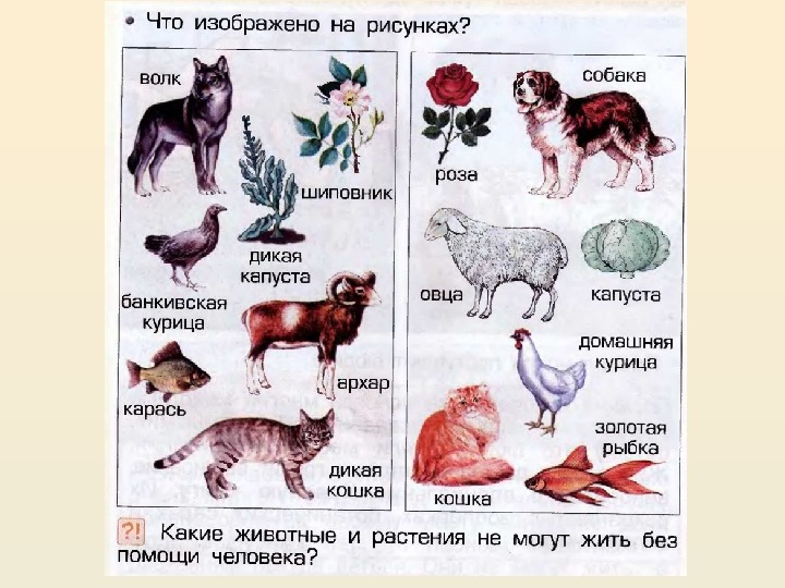 Презентация является приложением к уроку окружающего мира по УМК "Школа 2100" к учебнику А.А.Вахрушева "Окружающий мир 1 класс". На уроке ученики узнают как приручили диких животных и они стали помощниками человека, какие профессии получили животные, какую роль играют в нашей жизни. Ребята познакомятся с распространёнными комнатными растениями и узнают как за ними ухаживать.Домашние и дикие животные и растения