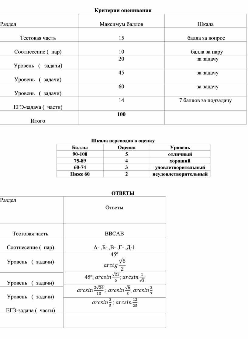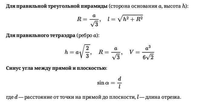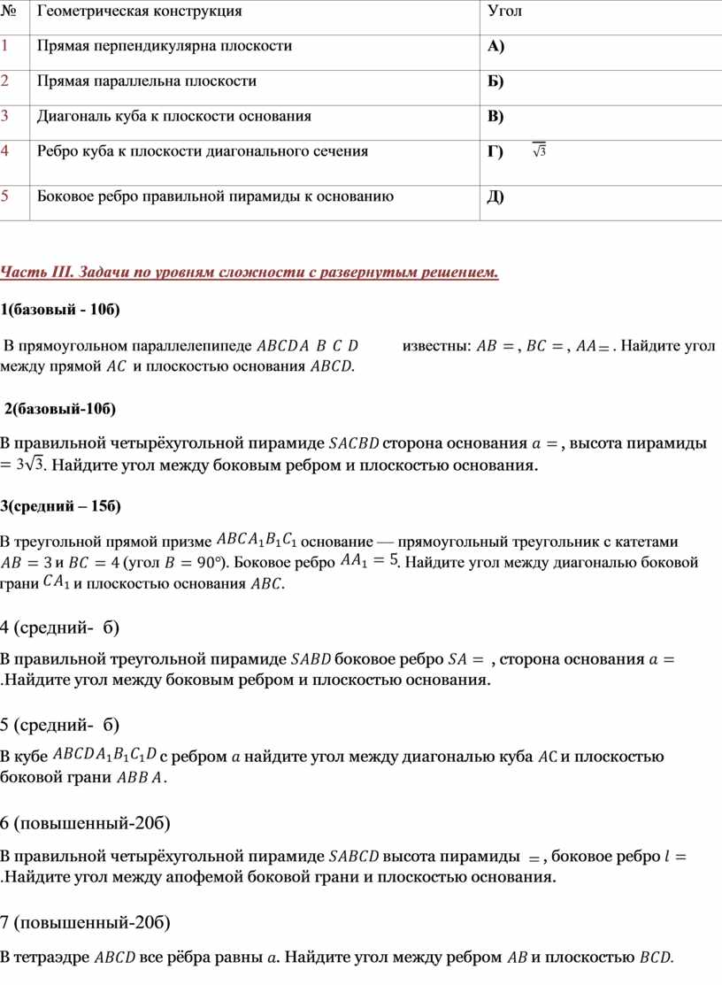 Часть II. Установите соответствие между геометрическими объектами и углом между прямой и плоскостью. За каждое верное соответствие — 2 балла.