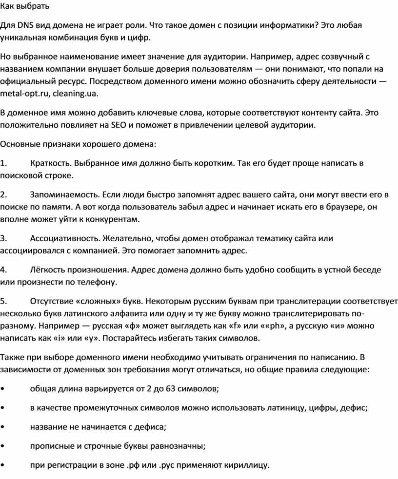 Также при выборе доменного имени необходимо учитывать ограничения по написанию. В зависимости от доменных зон требования могут отличаться, но общие правила следующие: