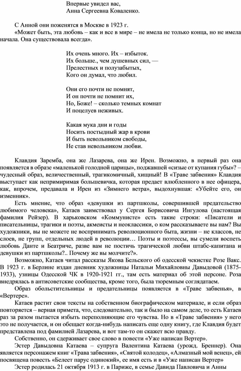 Катаев растит свои тексты на собственном биографическом материале, и если образ повторяется – верная примета, что, следовательно, так и было на самом деле, то есть Катаев раз за разом пытается избыть переполняющие его чувства. Но в «Траве забвения» у него это не получается, и он обещает когда-нибудь написать еще одну книгу, где Клавдия будет представлена под фамилией Лазарева, и вот там-то он скажет всю правду.
