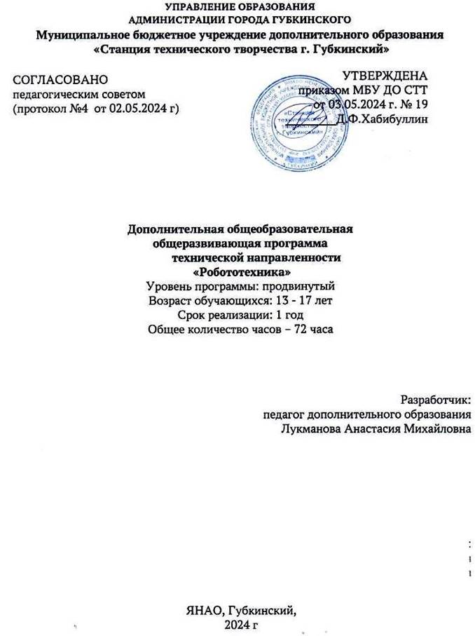 • Устав муниципального бюджетного учреждения дополнительного образования «Станция технического творчества г. Губкинский».