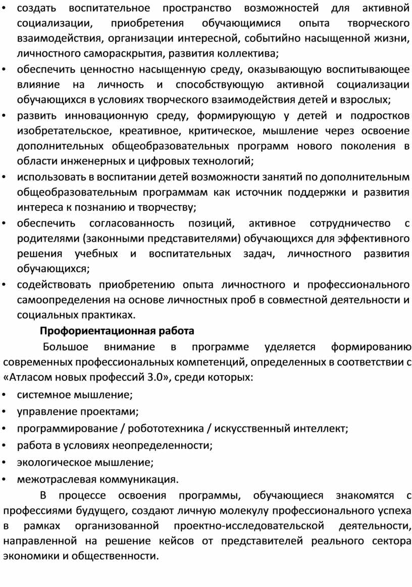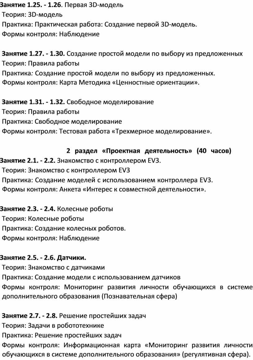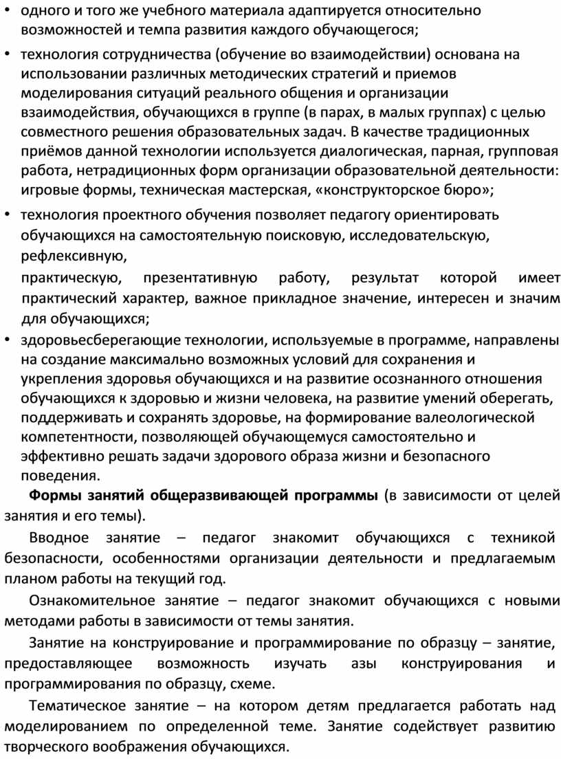 Данная программа позволяет построить интегрированный курс, сопряженный со смежными направлениями, напрямую выводящий на свободное манипулирование конструкционными и электронными компонентами. Выстраиваясь в единую линию, заданную целью проектирования, компоненты приобретают технологический характер, фактически становятся конструктором, позволяющим иметь больше степеней свободы творчества.