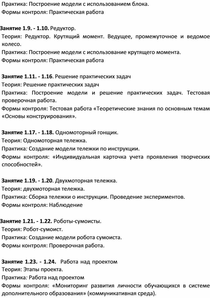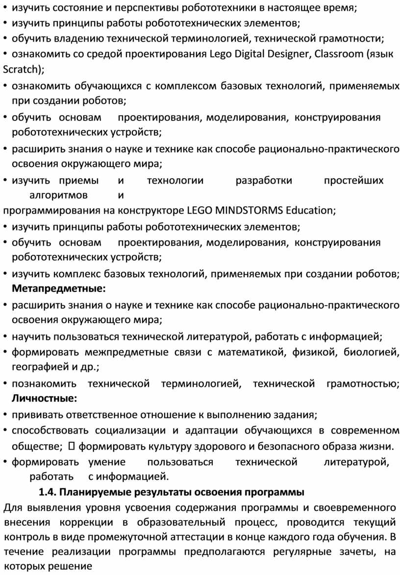 В процессе конструирования и программирования управляемых моделей, обучающиеся получат дополнительные знания в области физики, механики и информатики, что, в конечном итоге, изменит картину восприятия ими технических дисциплин, переводя их из разряда умозрительных в разряд прикладных.