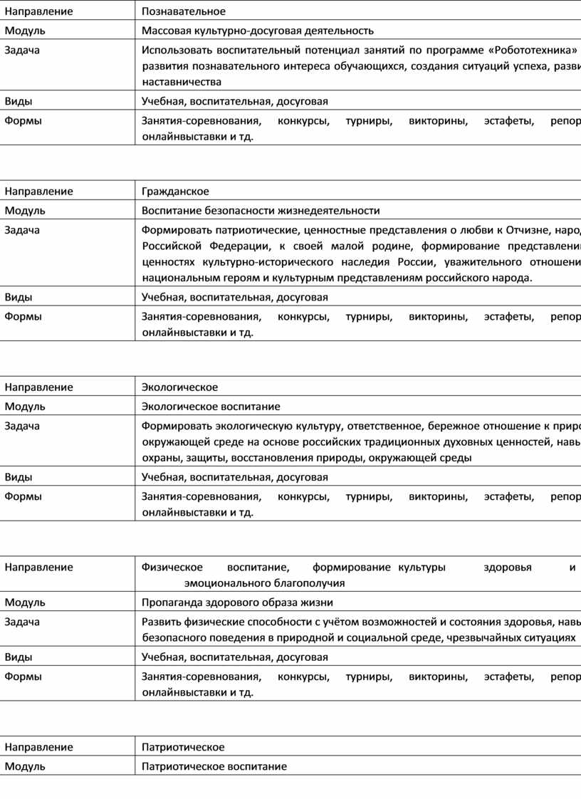 Направленность образования. Данная программа направлена на формирование и развитие технического творчества детей, удовлетворение их индивидуальных потребностей в интеллектуальном, нравственном совершенствовании, формирование культуры безопасного и здорового образа жизни. Направленность программы: