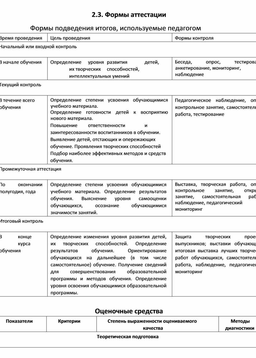 Для выявления уровня усвоения содержания программы и своевременного внесения коррекции в образовательный процесс, проводится текущий контроль в виде промежуточной аттестации в конце каждого года обучения. В течение реализации программы предполагаются регулярные зачеты, на которых решение поставленной заранее известной задачи принимается в свободной форме (не обязательно предложенной преподавателем).