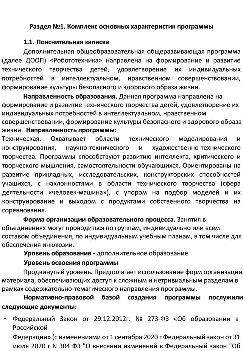Раздел №1. Комплекс основных характеристик программы