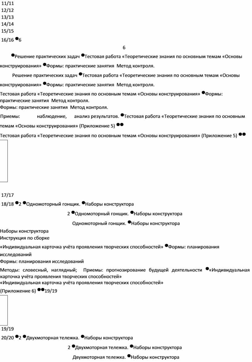 • формировать умение пользоваться технической литературой, работать с информацией.