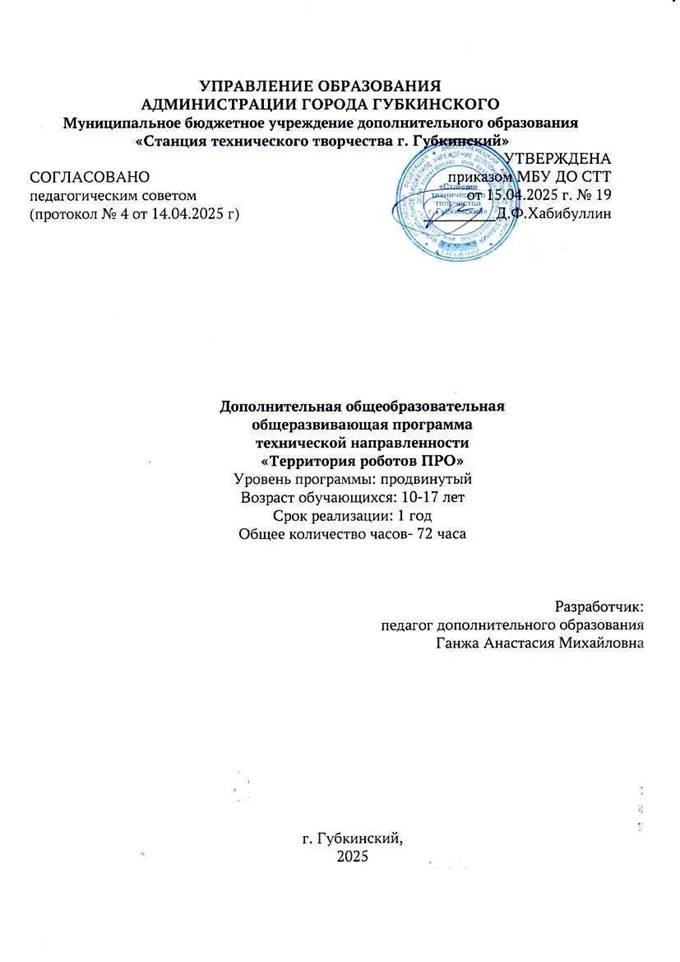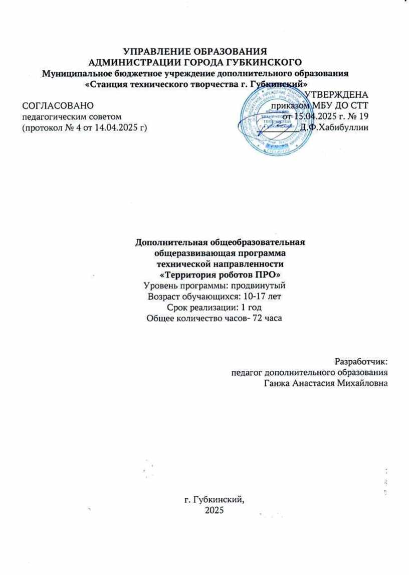 • Устав муниципального бюджетного учреждения дополнительного образования «Станция технического творчества г. Губкинский».