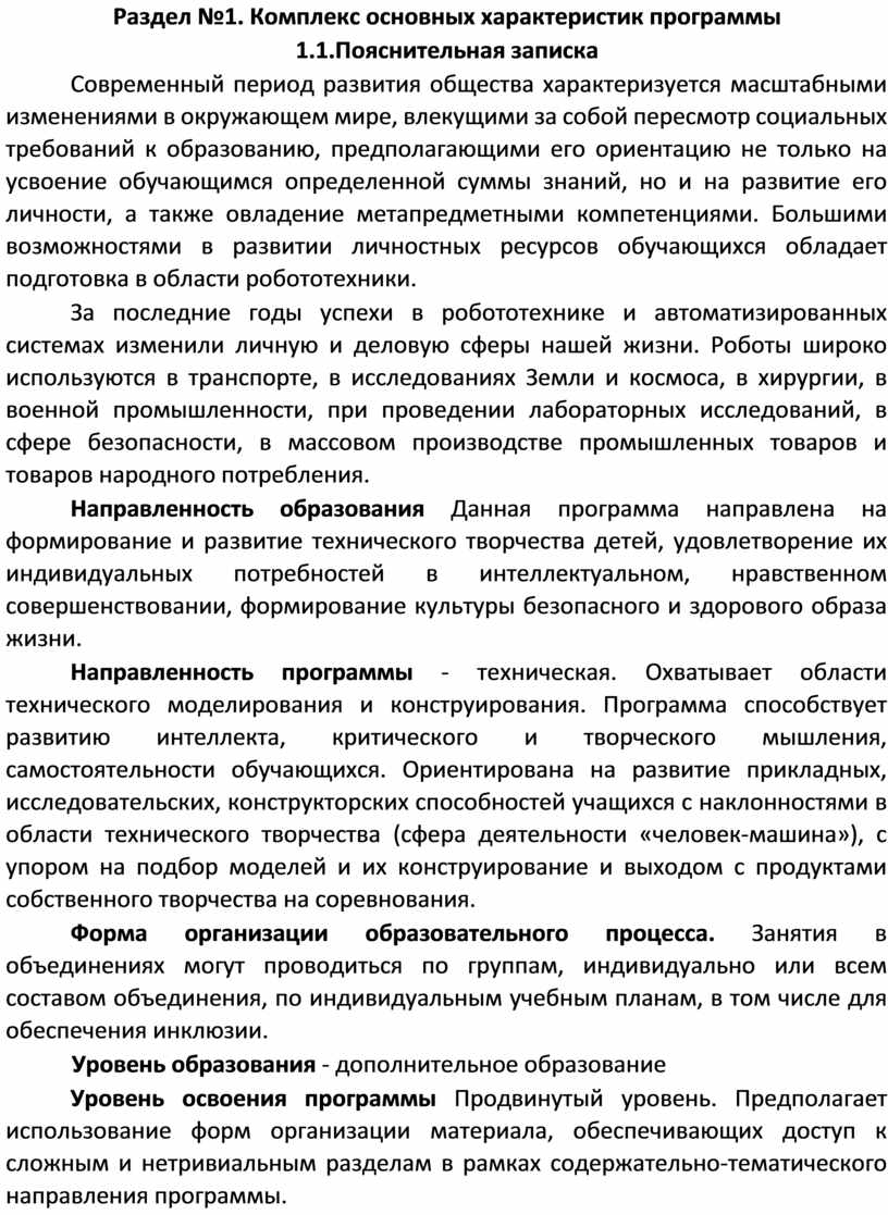 Раздел №1. Комплекс основных характеристик программы