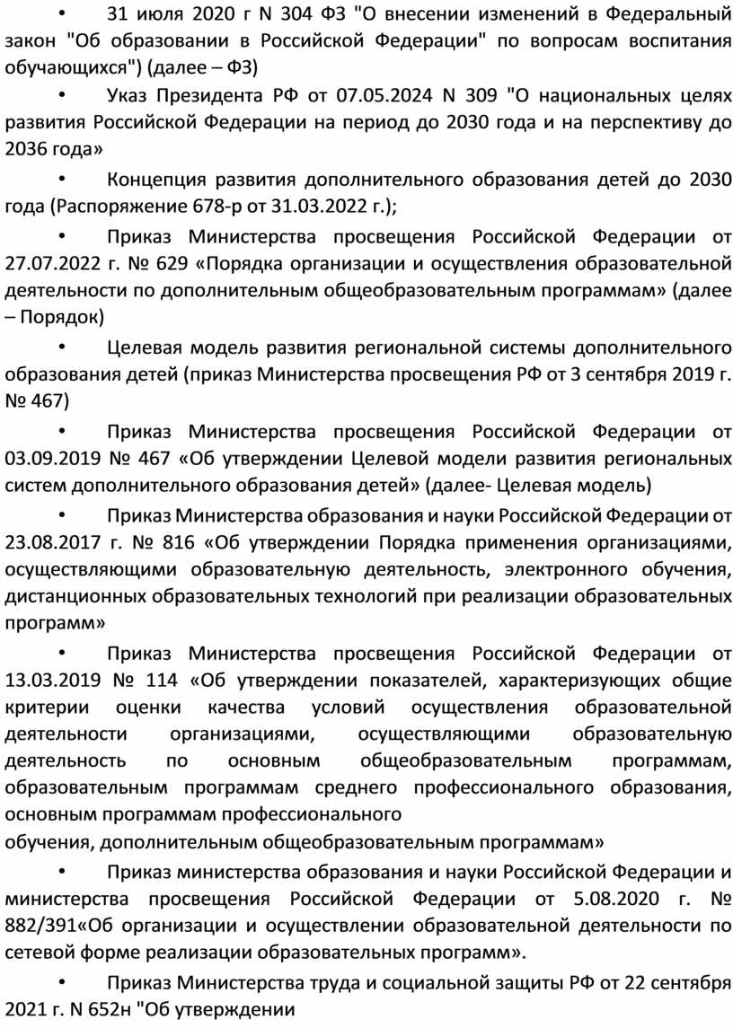 • Концепция развития дополнительного образования детей до 2030 года (Распоряжение 678-р от 31.03.2022 г.);