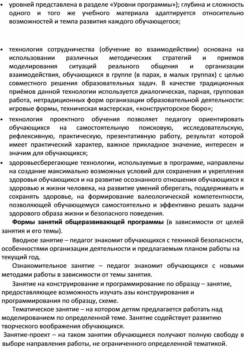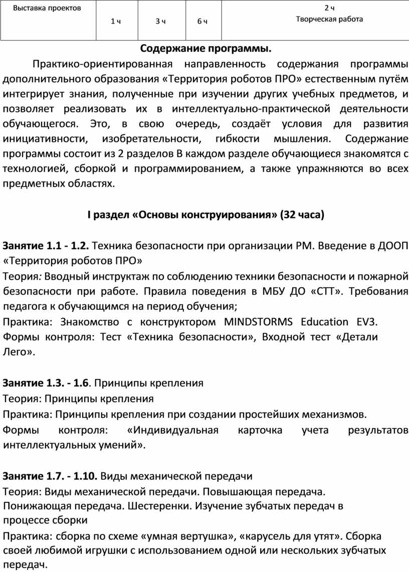 Направленность образования Данная программа направлена на формирование и развитие технического творчества детей, удовлетворение их индивидуальных потребностей в интеллектуальном, нравственном совершенствовании, формирование культуры безопасного и здорового образа жизни.