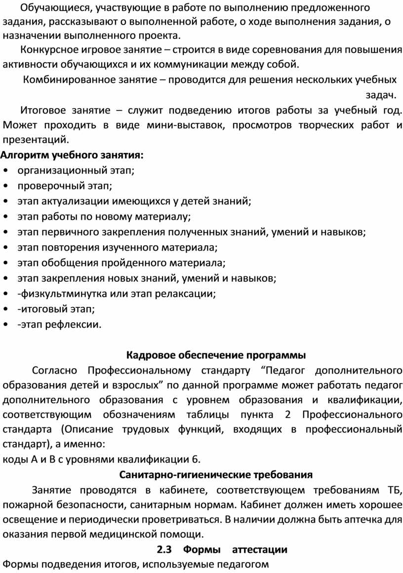 • профессионального стандарта "Педагог дополнительного образования детей и взрослых».