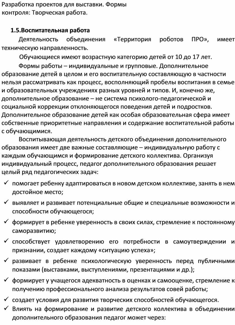 Форма организации образовательного процесса. Занятия в объединениях могут проводиться по группам, индивидуально или всем составом объединения, по индивидуальным учебным планам, в том числе для обеспечения инклюзии.