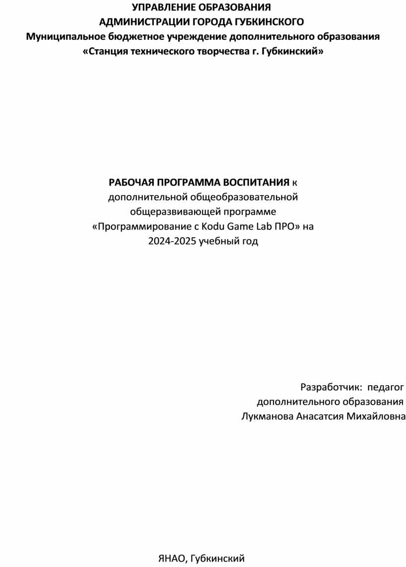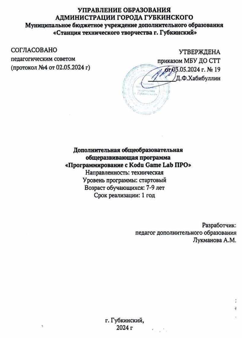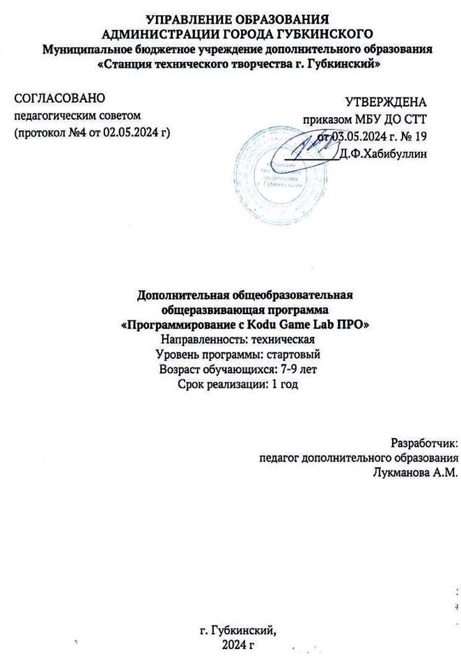 ● Устав муниципального бюджетного учреждения дополнительного образования «Станция технического творчества г. Губкинский».