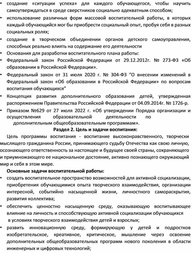 Федеральный Закон от 29.12.2012г. № 273-ФЗ «Об образовании в Российской Федерации» (с изменениями от 1 сентября 2020 г Федеральный закон от 31 июля 2020 г N 304 ФЗ "О внесении изменений в Федеральный закон "Об образовании в Российской Федерации" по вопросам воспитания обучающихся") (далее – ФЗ).