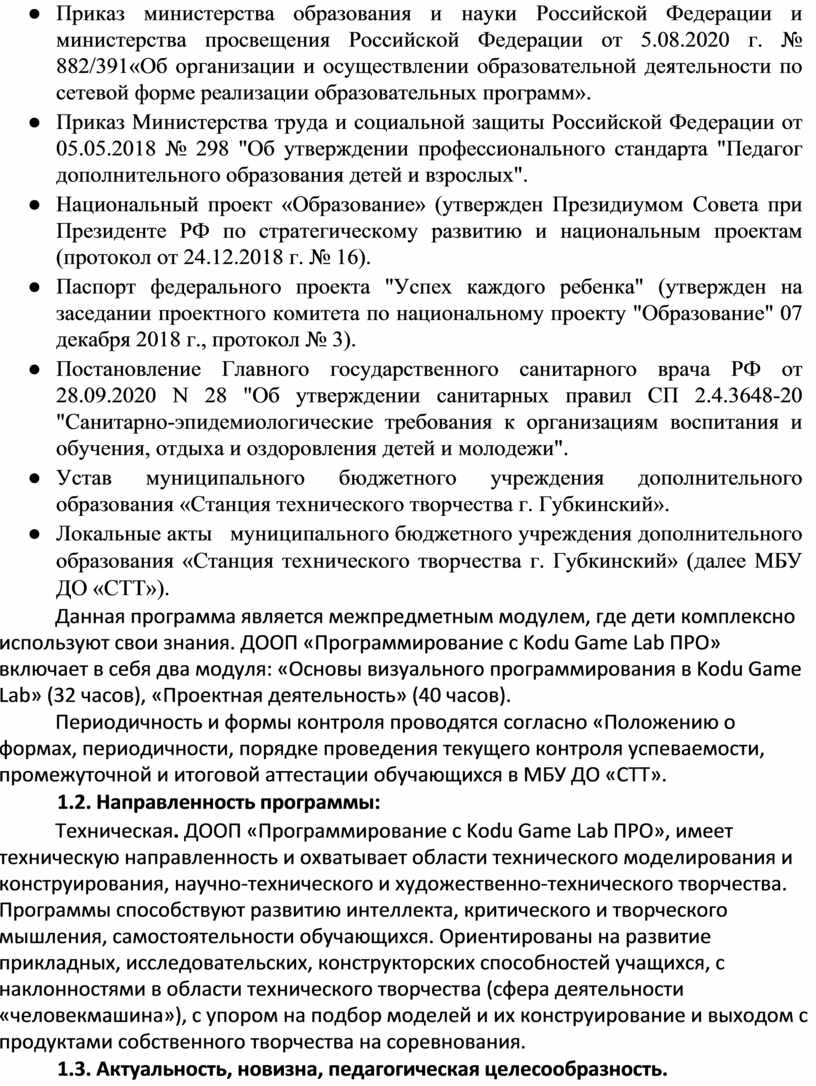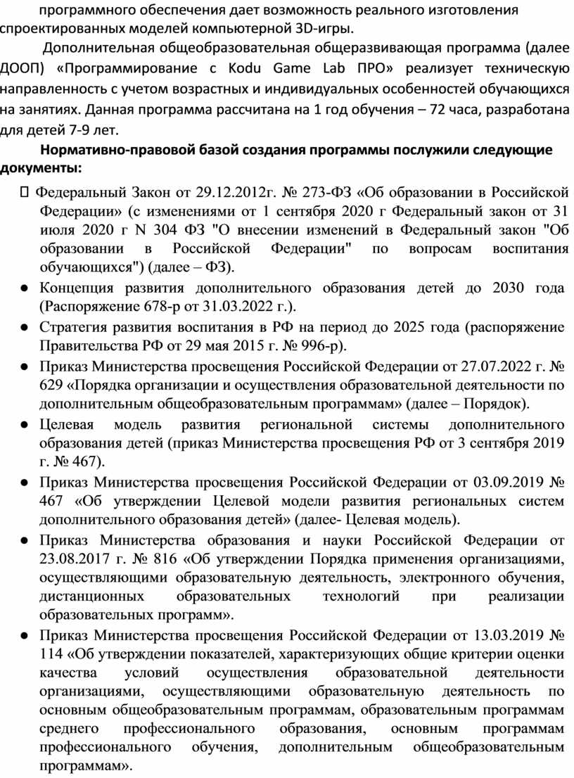 Дополнительная общеобразовательная общеразвивающая программа (далее ДООП) «Программирование с Kodu Game Lab ПРО» реализует техническую направленность с учетом возрастных и индивидуальных особенностей обучающихся на занятиях. Данная программа рассчитана на 1 год обучения – 72 часа, разработана для детей 7-9 лет.