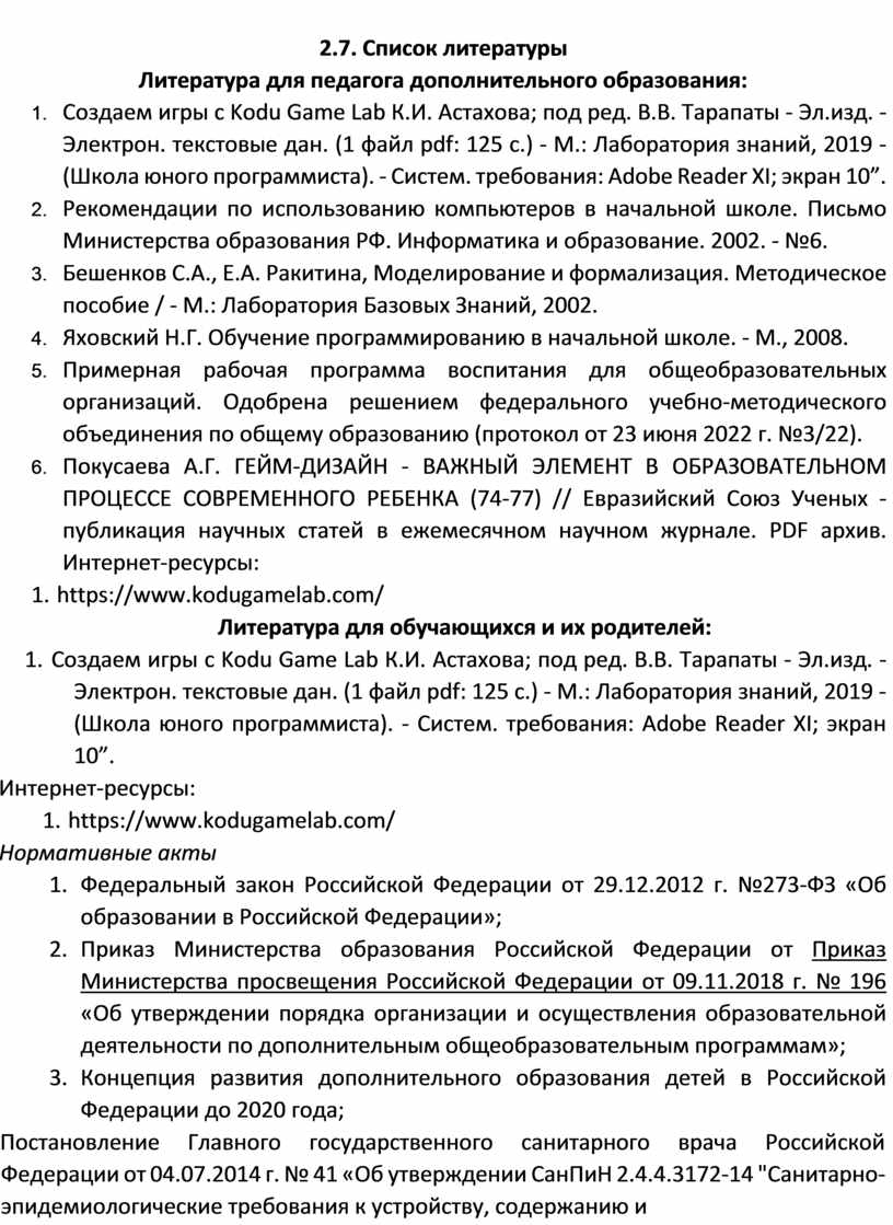 ● Приказ Министерства просвещения Российской Федерации от 27.07.2022 г. № 629 «Порядка организации и осуществления образовательной деятельности по дополнительным общеобразовательным программам» (далее – Порядок).