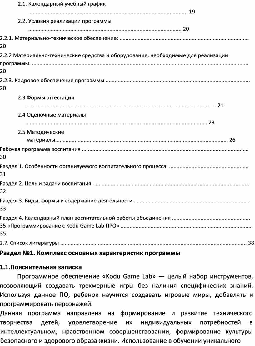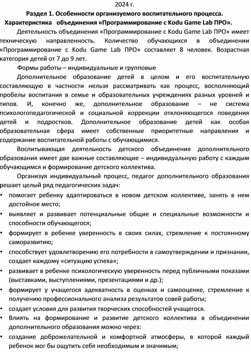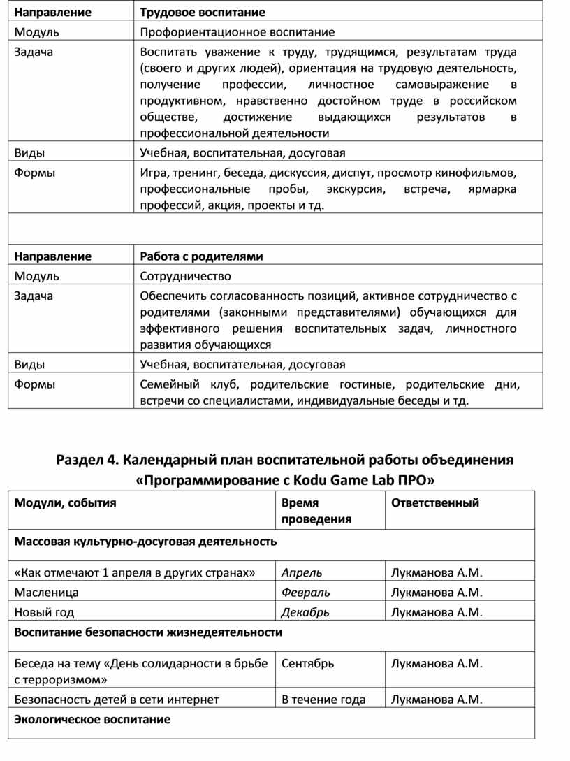 Раздел 4. Календарный план воспитательной работы объединения .................................................... 35 «Программирование с Kodu Game Lab ПРО» ........................................................................................ 35
