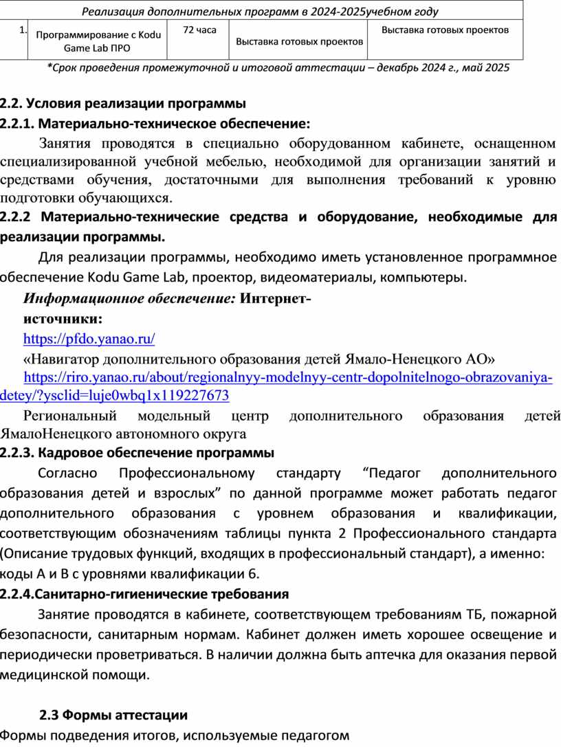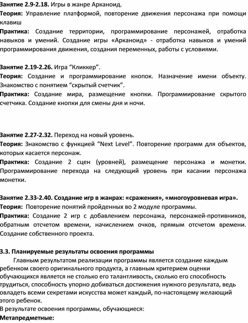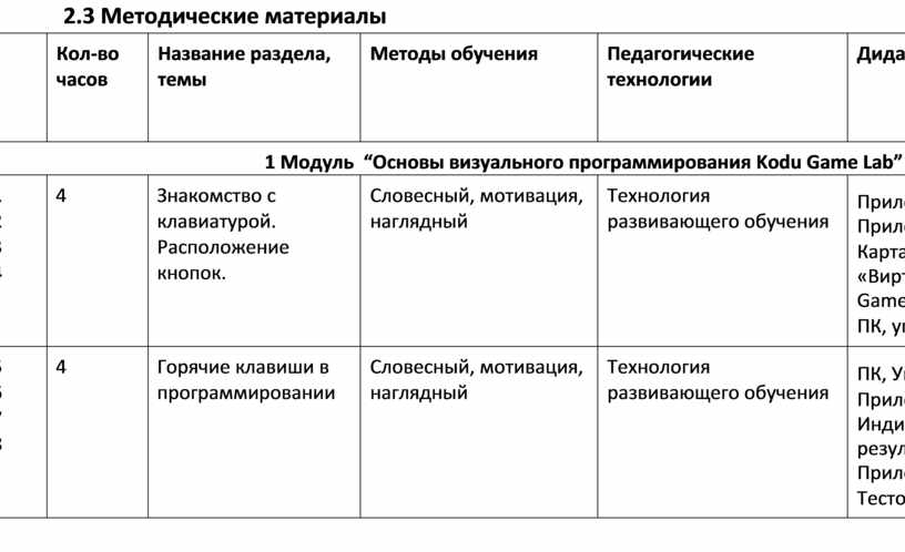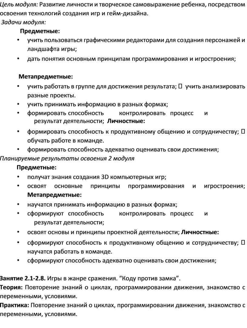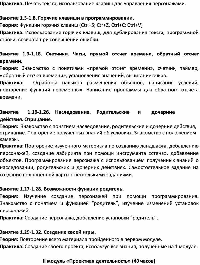 Данная программа является межпредметным модулем, где дети комплексно используют свои знания. ДООП «Программирование с Kodu Game Lab ПРО» включает в себя два модуля: «Основы визуального программирования в Kodu Game Lab» (32 часов), «Проектная деятельность» (40 часов).