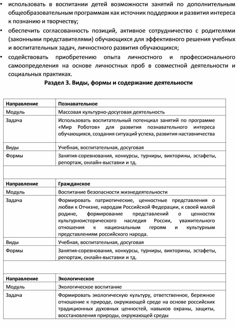 Раздел 3. Виды, формы и содержание деятельности ............................................................................. 33