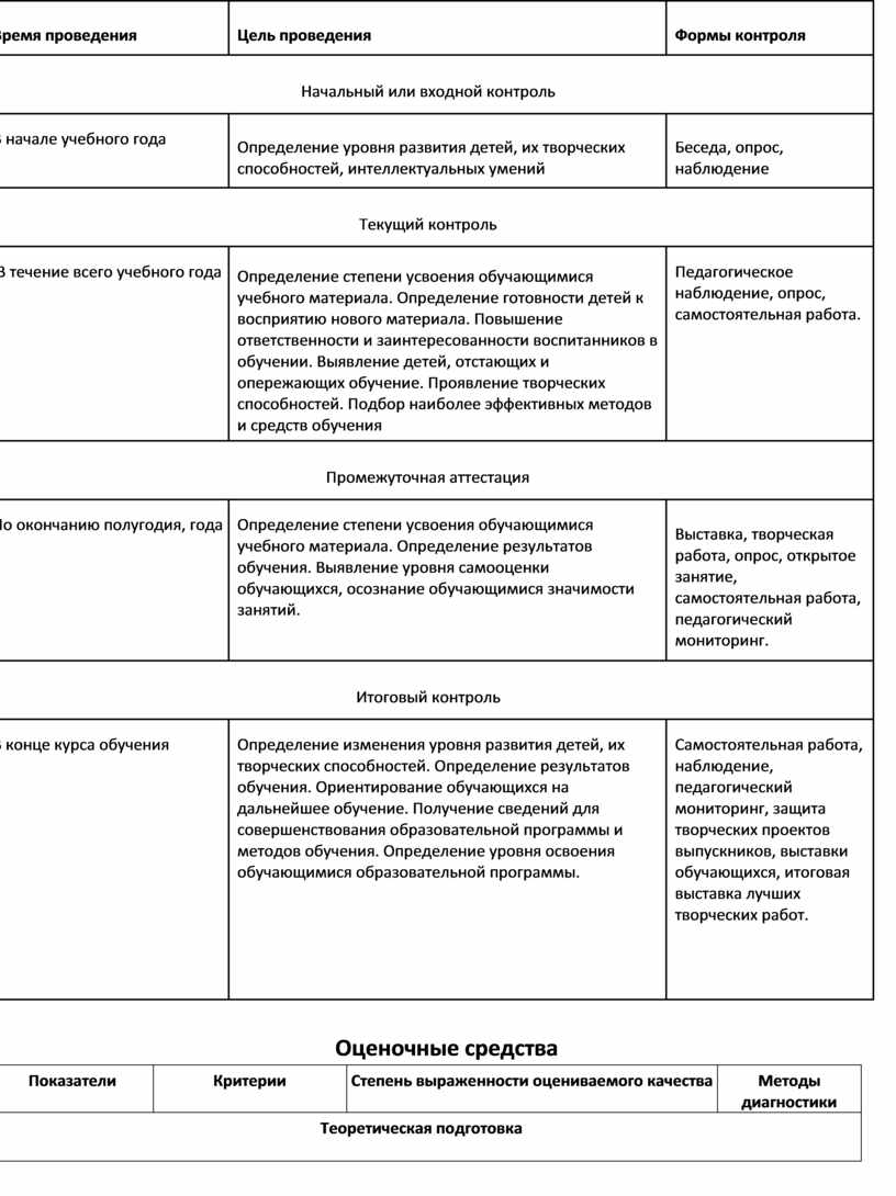 Периодичность и формы контроля проводятся согласно «Положению о формах, периодичности, порядке проведения текущего контроля успеваемости, промежуточной и итоговой аттестации обучающихся в МБУ ДО «СТТ».