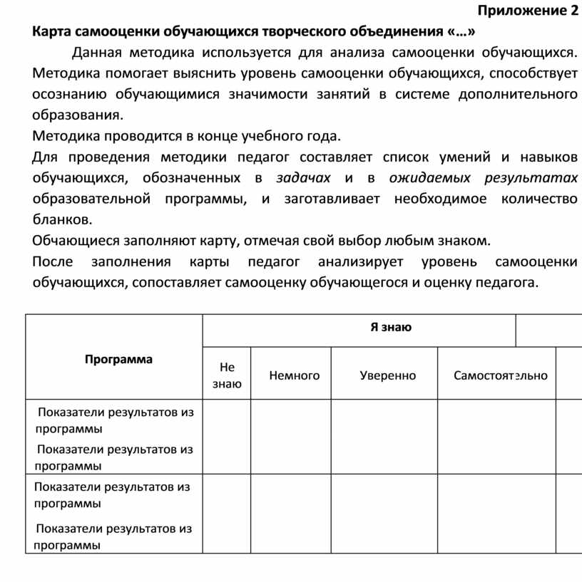 Карта оценки результативности реализации образовательных программ Название программы, ее длительность ____________________________________