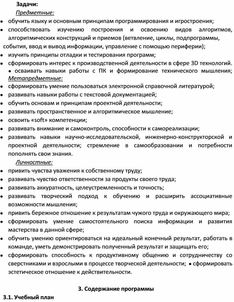 Данная программа направлена на формирование и развитие технического творчества детей, удовлетворение их индивидуальных потребностей в интеллектуальном, нравственном совершенствовании, формирование культуры безопасного и здорового образа жизни. Использование в обучении уникального программного обеспечения дает возможность реального изготовления спроектированных моделей компьютерной 3D-игры.