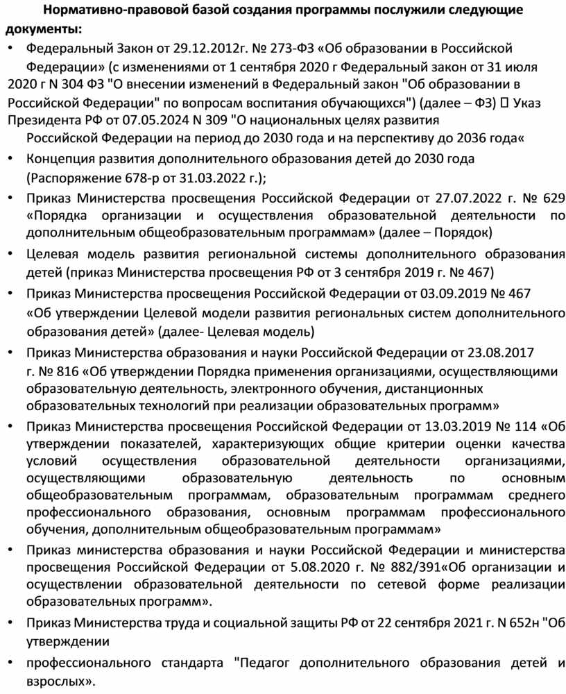 Федерации» (с изменениями от 1 сентября 2020 г Федеральный закон от 31 июля 2020 г N 304 ФЗ "О внесении изменений в Федеральный закон "Об образовании в Российской Федерации" по вопросам воспитания обучающихся") (далее – ФЗ) Указ Президента РФ от 07.05.2024 N 309 "О национальных целях развития