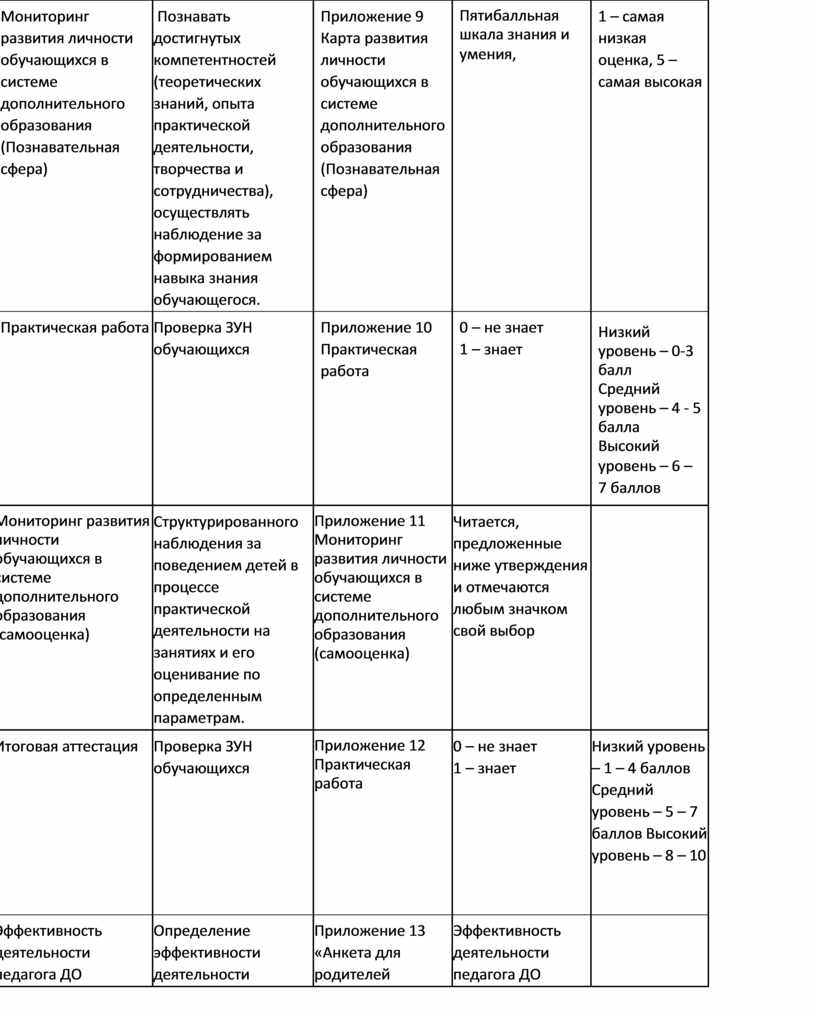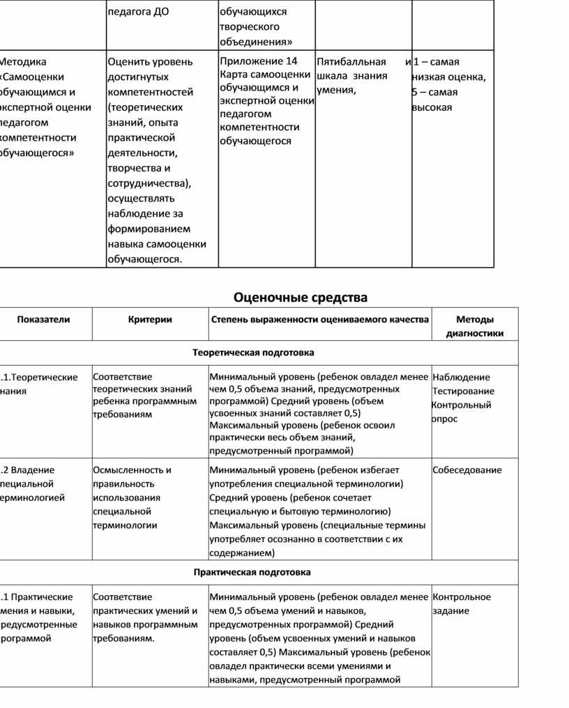 Данная методика предназначена для диагностики результатов освоения обучающимися образовательной программы. Кроме того, методика способствует обучению ребёнка оценивать уровень достигнутых компетентностей (теоретических знаний, опыта практической деятельности, творчества и сотрудничества), позволяет педагогу осуществлять наблюдение за формированием навыка самооценки обучающегося. Анкета предназначена для обучающихся 6-12 лет.