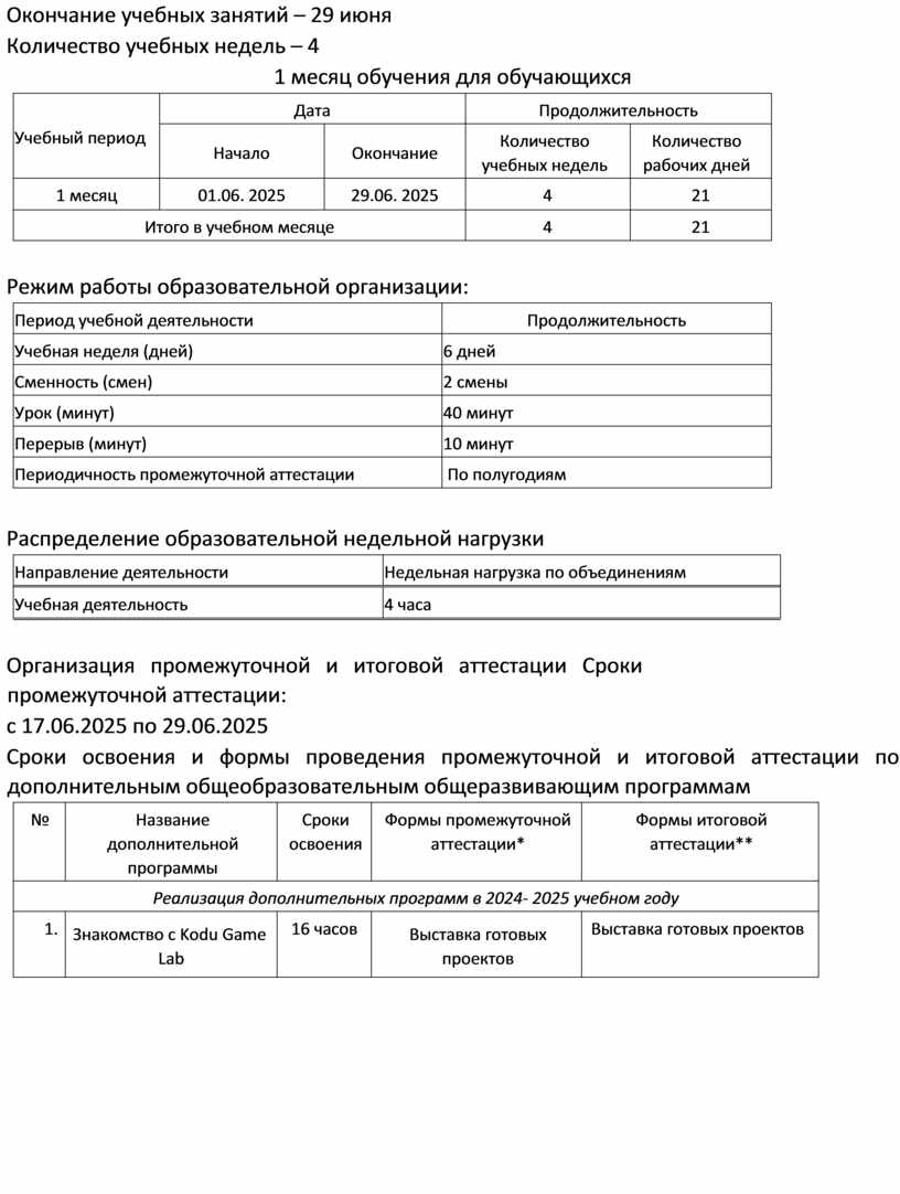 Количество часов и занятий в неделю: 2 часа. Занятия проводятся два раза в неделю по 2 академических часа. В соответствии с СанПиН 2.4. 3648-20 "Санитарно-эпидемиологические требования к организациям воспитания и обучения, отдыха и оздоровления детей и молодежи” длительность одного академического часа для детей 7- 9 лет составляет 40 минут. Между занятиями предусмотрен перерыв 10 минут.