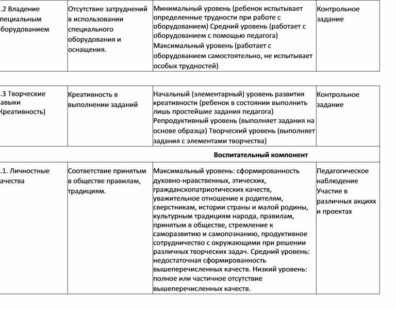 опыт практической деятельности - пункты 3, 4; опыт творчества - пункты 5, 6; опыт сотрудничества - пункты 7, 8.
