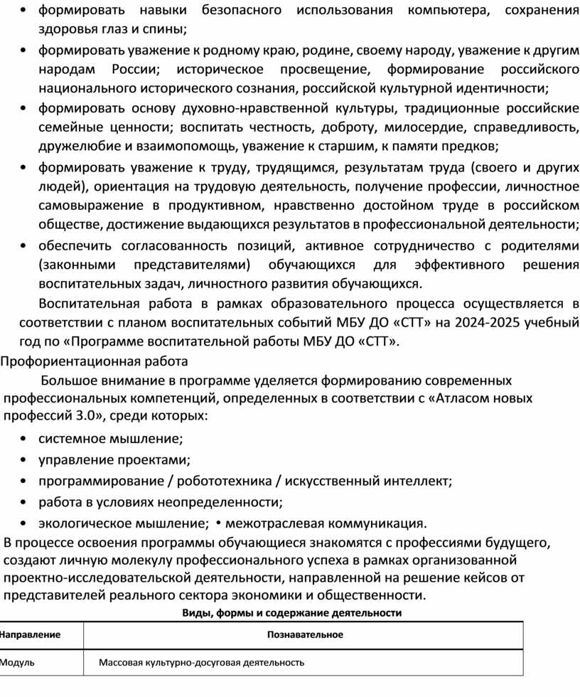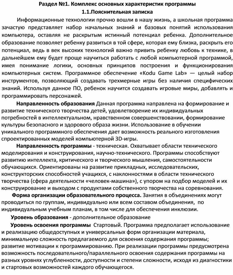 Раздел №1. Комплекс основных характеристик программы
