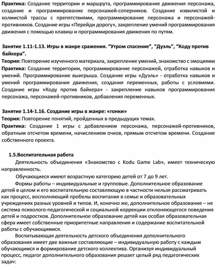 Информационные технологии прочно вошли в нашу жизнь, а школьная программа зачастую представляет набор начальных знаний и базовых понятий использования компьютера, оставляя не раскрытым истинный потенциал ребенка. Дополнительное образование позволяет ребенку развиться в той сфере, которая ему близка, раскрыть его потенциал, ведь в век высоких технологий важно привить ребенку любовь к технике, в дальнейшем ему будет проще научиться работать с любой компьютерной программой, имея понимание логики, основных принципов построения и функционирования компьютерных систем. Программное обеспечение «Kodu Game Lab» — целый набор инструментов, позволяющий создавать трехмерные игры без наличия специфических знаний. Используя данное ПО, ребенок научится создавать игровые миры, добавлять и программировать персонажей.