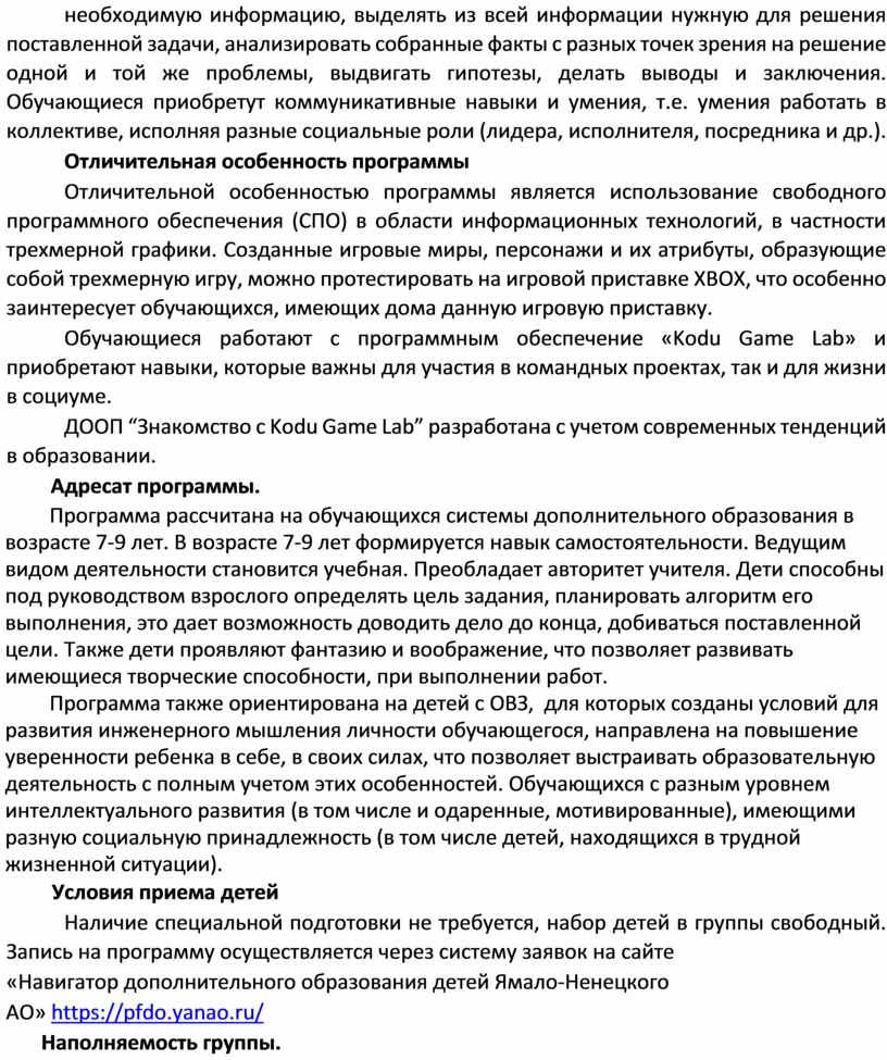 ДООП “Знакомство с Kodu Game Lab” разработана с учетом современных тенденций в образовании.
