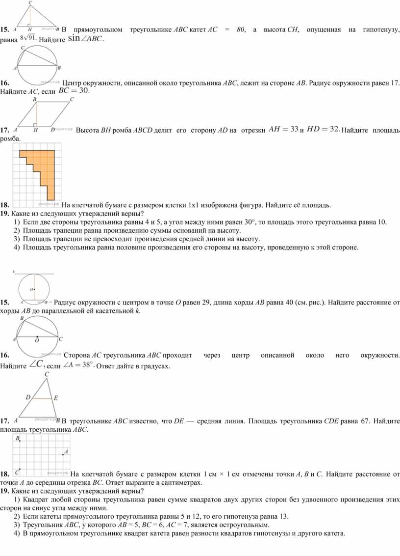 4) В прямоугольном треугольнике квадрат катета равен разности квадратов гипотенузы и другого катета.