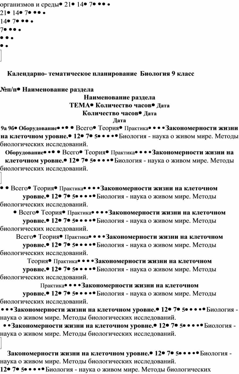 Дополнительная общеобразовательная общеразвивающая программа естественно-научной направленности по биологии (9 класс) с использованием оборудования центра