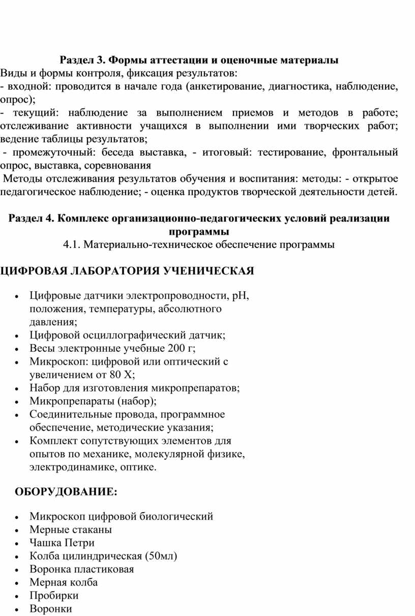 - оборудованием, средствами обучения и воспитания для реализации программ дополнительного образования естественно-научной направленностей;