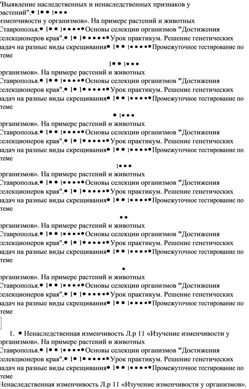 Ненаследственная изменчивость Л.р 11 «Изучение изменчивости у организмов». На примере растений и животных Ставрополья. |
