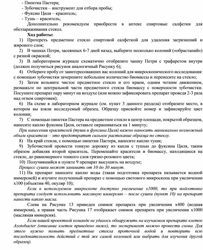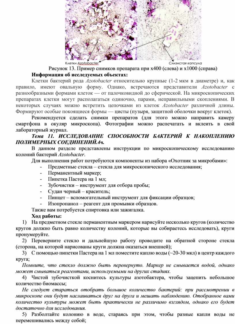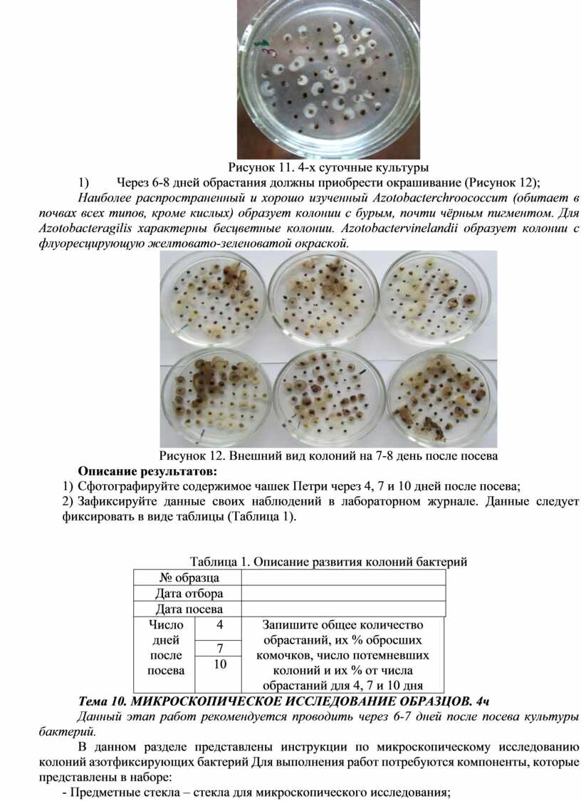 В данном разделе представлены инструкции по микроскопическому исследованию колоний бактерий Azotobaсter.
