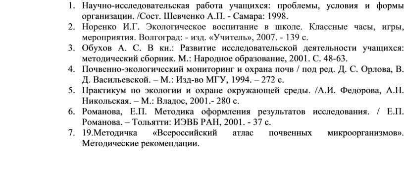 13. Научно-исследовательская работа учащихся: проблемы, условия и формы организации. /Сост. Шевченко А.П. - Самара: 1998.