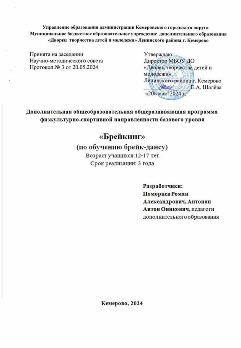 Устав и локальные акты МБОУ ДО «Дворец творчества детей и молодежи» Ленинского района г. Кемерово