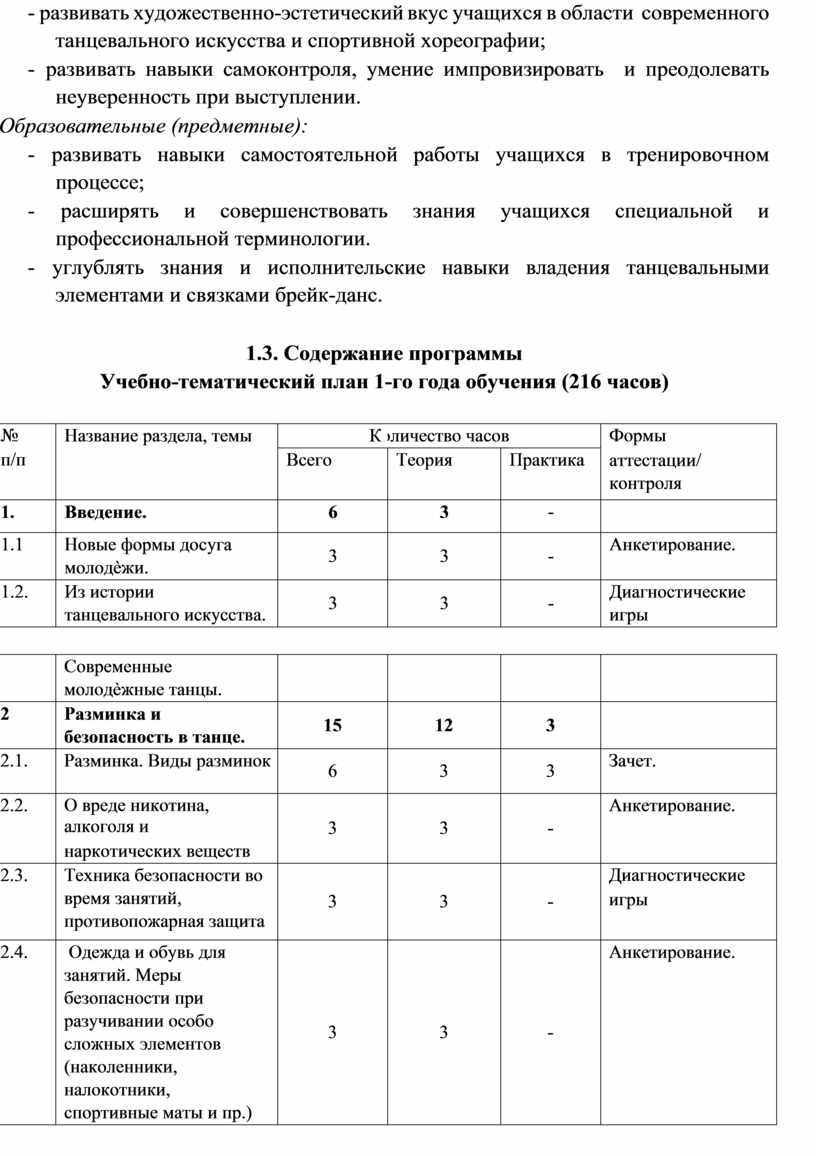 Раздел № 1 Комплекс основных характеристик программы