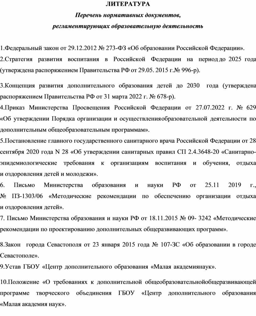 7. Письмо Министерства образования и науки РФ от 18.11.2015 № 09- 3242 «Методические рекомендации по проектированию дополнительных общеразвивающих программ».